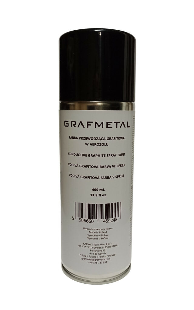 GRAFMETAL graphite conductive paint will make the surfaces painted with it conduct electricity. The product is available in a liquid form and in a spray can.