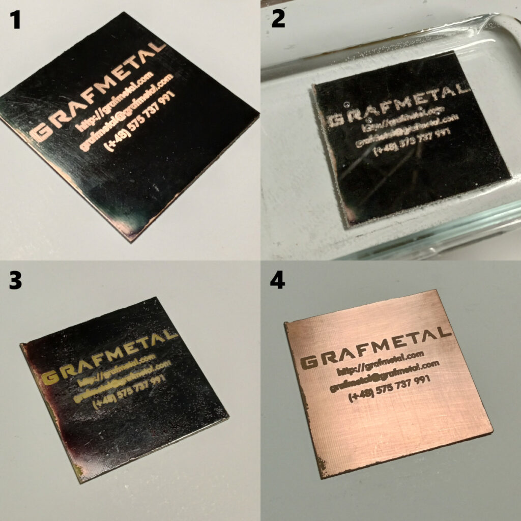 1. Apply the varnish to the board and burn it with a CO2 laser. Clean the pattern with a cloth lightly saturated with butyl acetate or acetone. The exposed copper layer must conduct electricity well during surface resistance measurement with a meter. The cleaning stage is crucial for achieving good etching results.