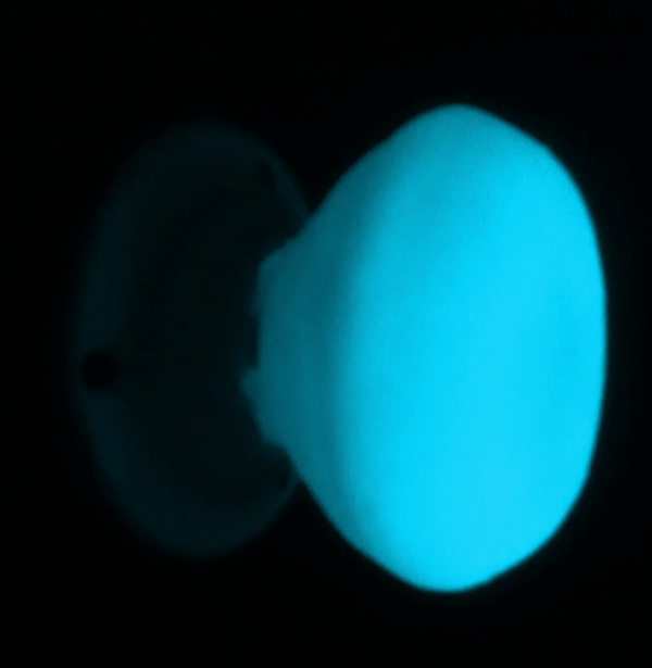 The paint emits light of a blue colour after prior irradiation with sunlight or artificial light. It is just necessary to expose the painted object to light for a short time (10 s for a strong light, 10 min for a weak light) and then it is possible to enjoy long lasting light emission.