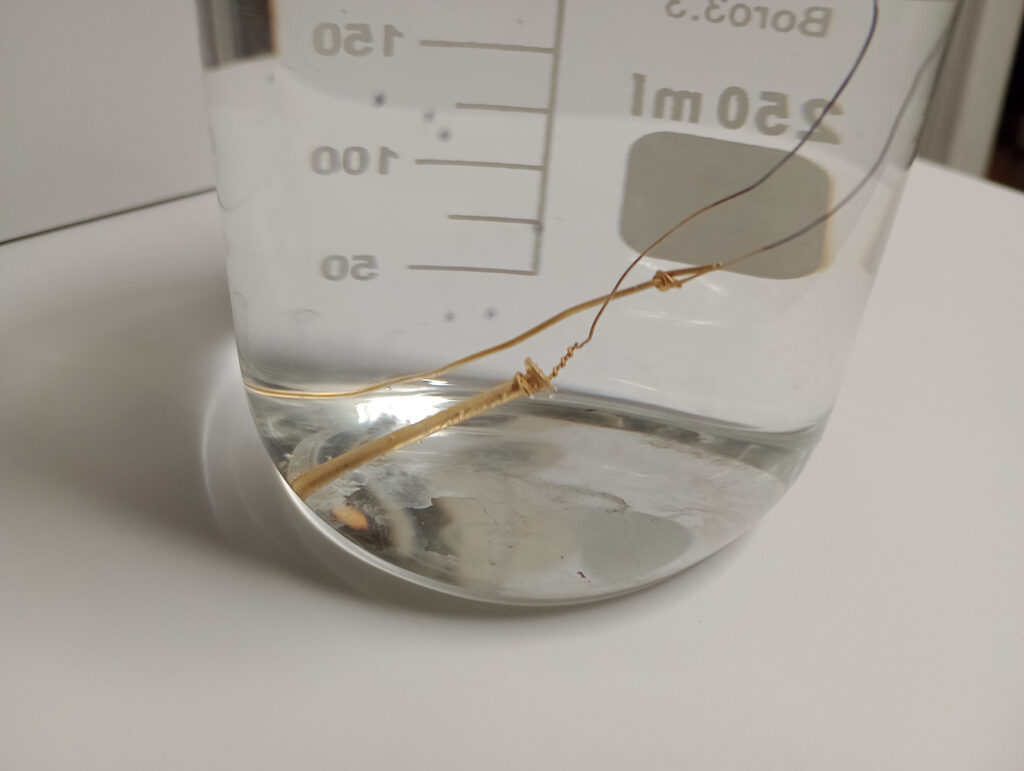 Electroless gold plating solution (2.5 g of potassium dicyanoaurate)