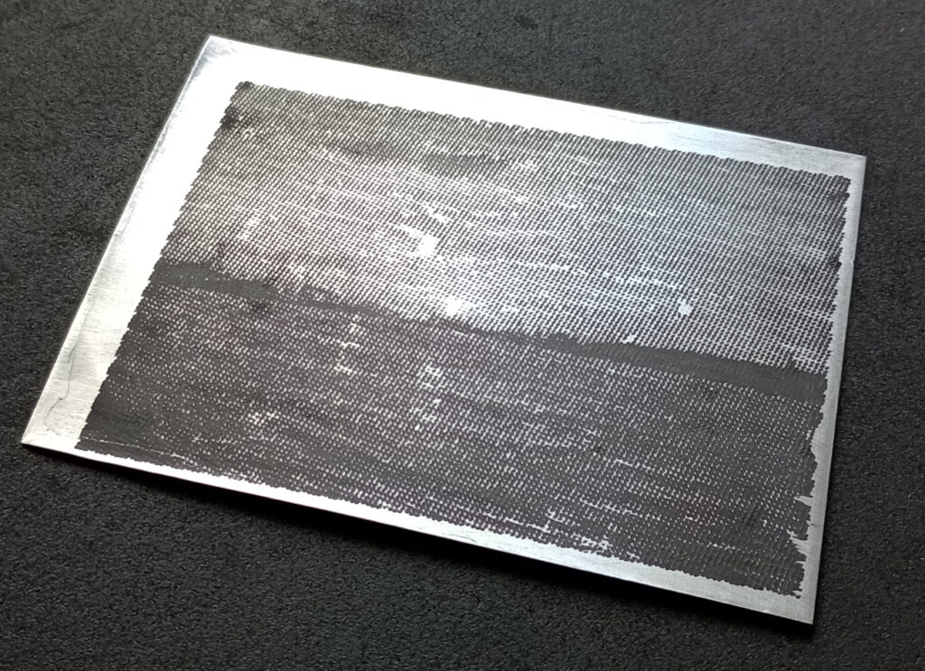 Additional remarks: if the adhesion is too weak, then increase power and/or reduce speed. If the layer is not uniform, then dilute the fluid. Metal objects with higher heat conductivity (e.g. copper, aluminium, brass or thicker objects) should be processed at lower speed and higher power. Patterns burnt with laser may be rinsed off with acetone. Yield up to 5 m2/L.