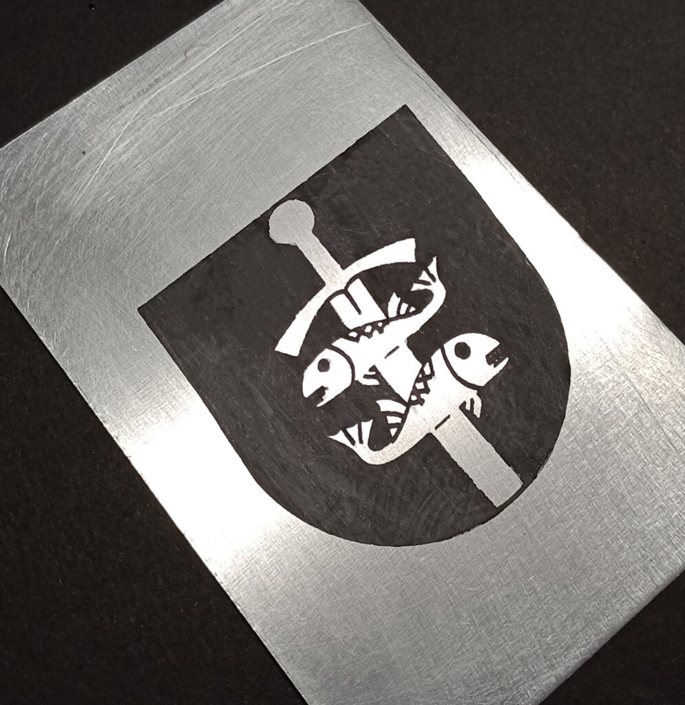 The product may be used both for marking already made metal objects as it may be used for preparing new metal plates. To do that it is needed to cut metal sheet first, which may be accomplished with the following methods: