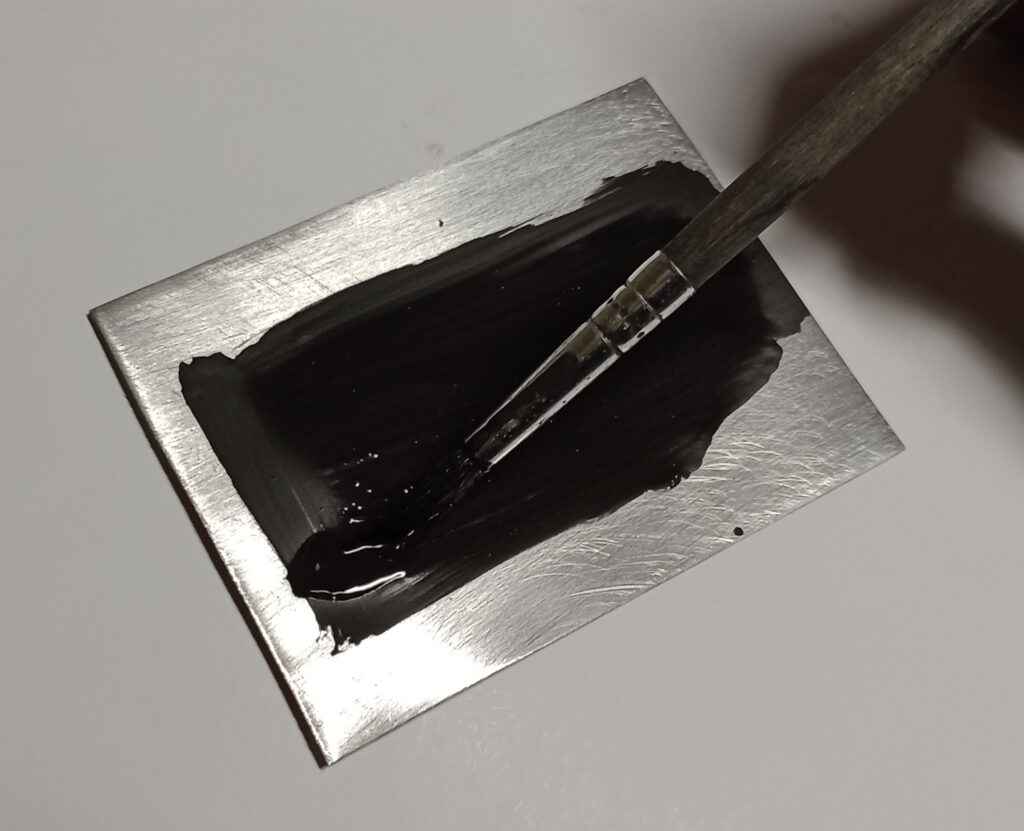 Right after stirring deposit a uniform and thin layer of preparation on the surface of a metal object with a spatula or a hard brush. Wait at least 10 min for drying.