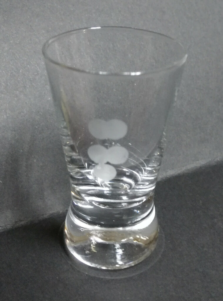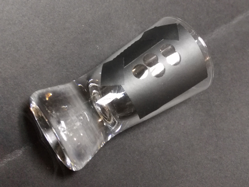 Apply a mask to the glass object: it can be cut vinyl film, or you can apply adhesive tape (such as fabric-reinforced tape, so-called duct tape) to the surface of the glass, and then burn a design in it with a laser