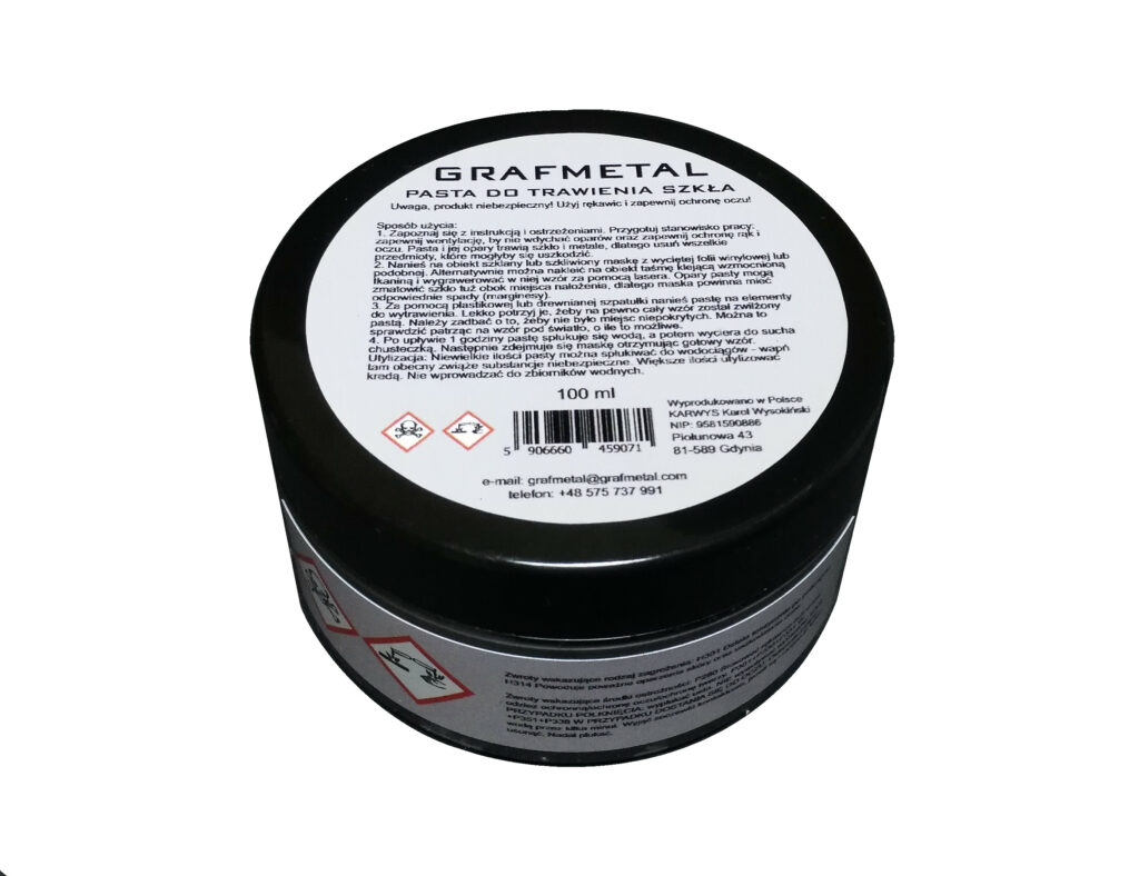 GRAFMETAL glass etching paste is used for etching i.e. local removal and roughening of the surface of glass and glazed ceramics.